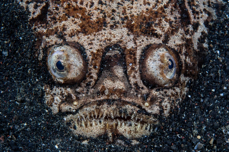 These bottom-dwelling hunters lie buried in sediment, exposing only a pair of watchful eyes that seem to stare upward. Their romantic appearance is deceptive: stargazers are armed with powerful, often venomous spines, and some species can even deliver electric shocks.